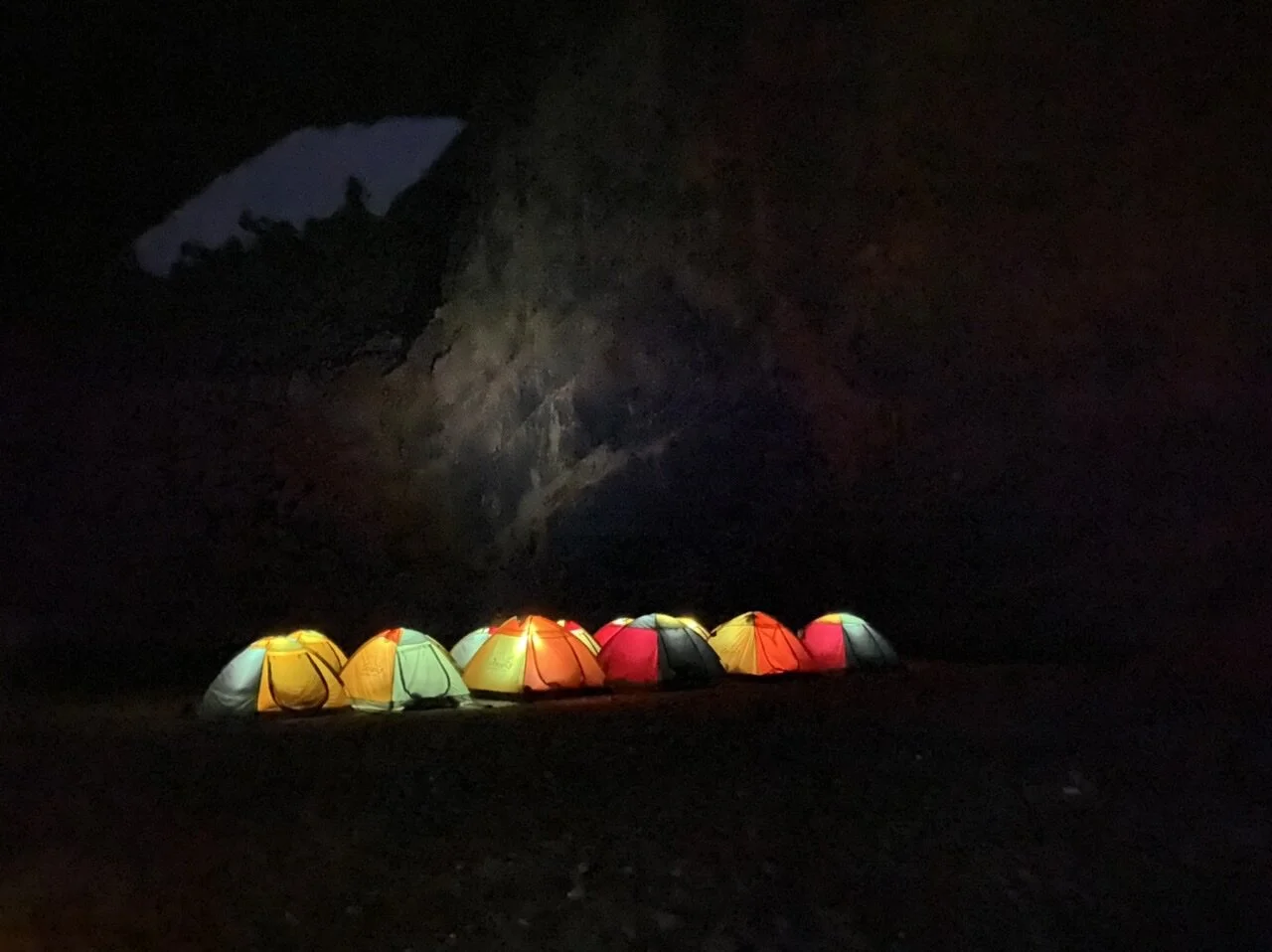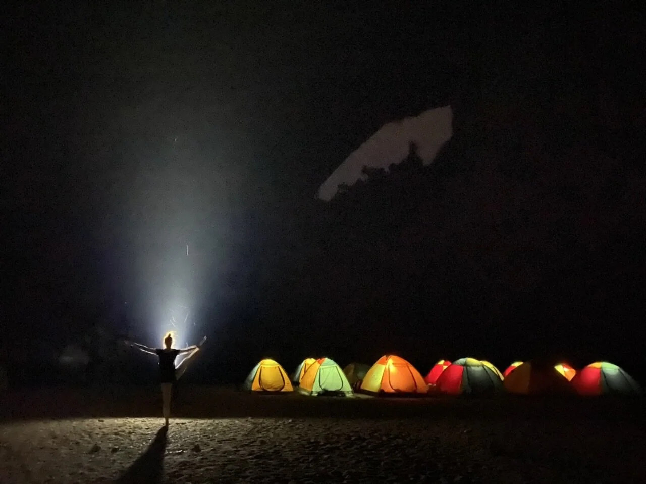 Onwards to Barafu Camp. This is where we’d settle in before our 11pm wake-up call to summit Kilimanjaro. We could see Stella Point from here and let me tell you, it looked a lot more than 5KM.. After an early-ish dinner, we’d received our briefing for summit day and were instructed to try to get as much sleep as possible. It was still daylight, but the more hours of rest we got, the better we’d be. So to the tents we went.